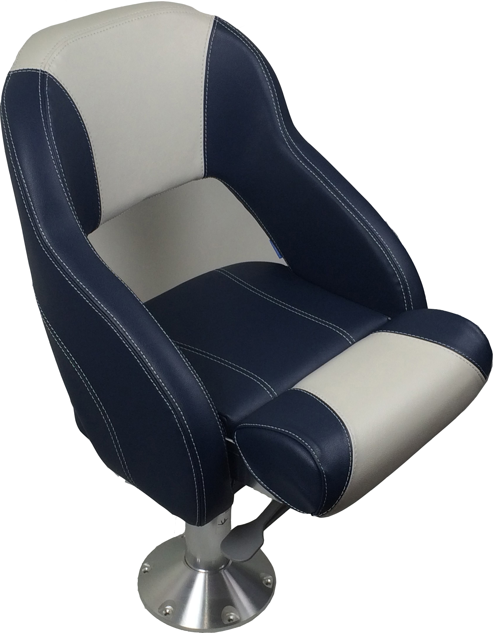 Rotasjonsstøpt ABS plast i ramme. Godt polstret i rygg og sete, med åpning i ryggdelen. I kombinasjon med stå/sitte funksjon er dette moderne og komfortabel båtstol.