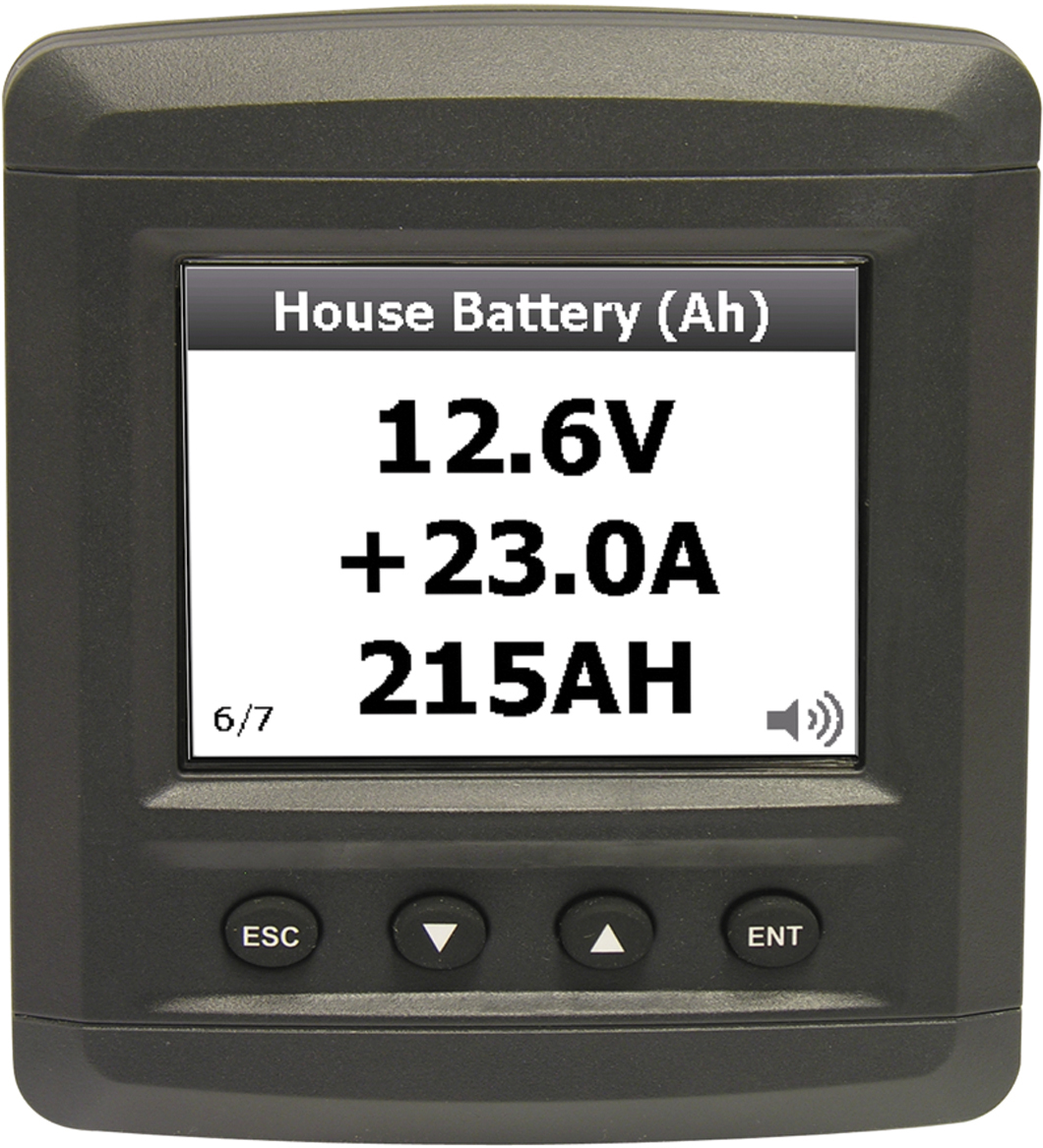 Monitorsystem i høy kvalitet som overvåker elektriske installasjoner og tanknivåer ombord i båten. Kan programmeres til å varsle ved alarm ved egendefinerte nivåer. Man kan veksle mellom analog, digital eller grafisk visning. LCD-fargeskjermen er på 2,8″». Den kan dimmes og tastene/panelet er bakbelyst. 5 mtr kabel og en shunt medfølger. 8-32V. Maks 140 A. LCD Farge.