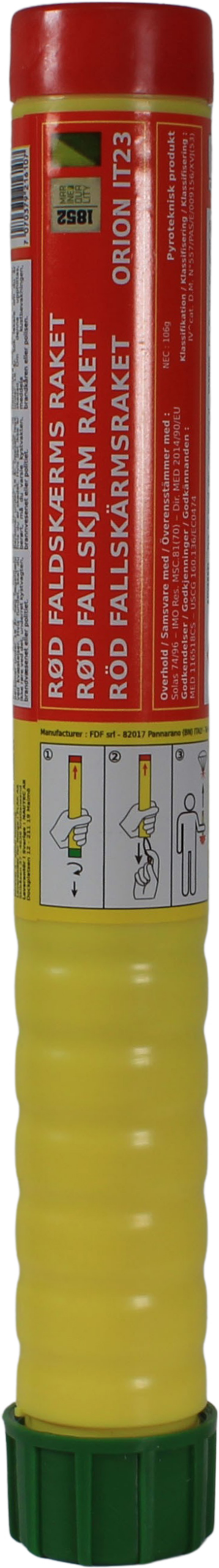 Nødrakett med fallskjerm er synlig på lang avstand. Den blir skutt over 300 meter opp i luften og svever langsomt nedover ved hjelp av en fallskjerm. Den lyser rødt 30.000 cd i ca 40 sekunder og kan sees i opp til 5 nm avstand.