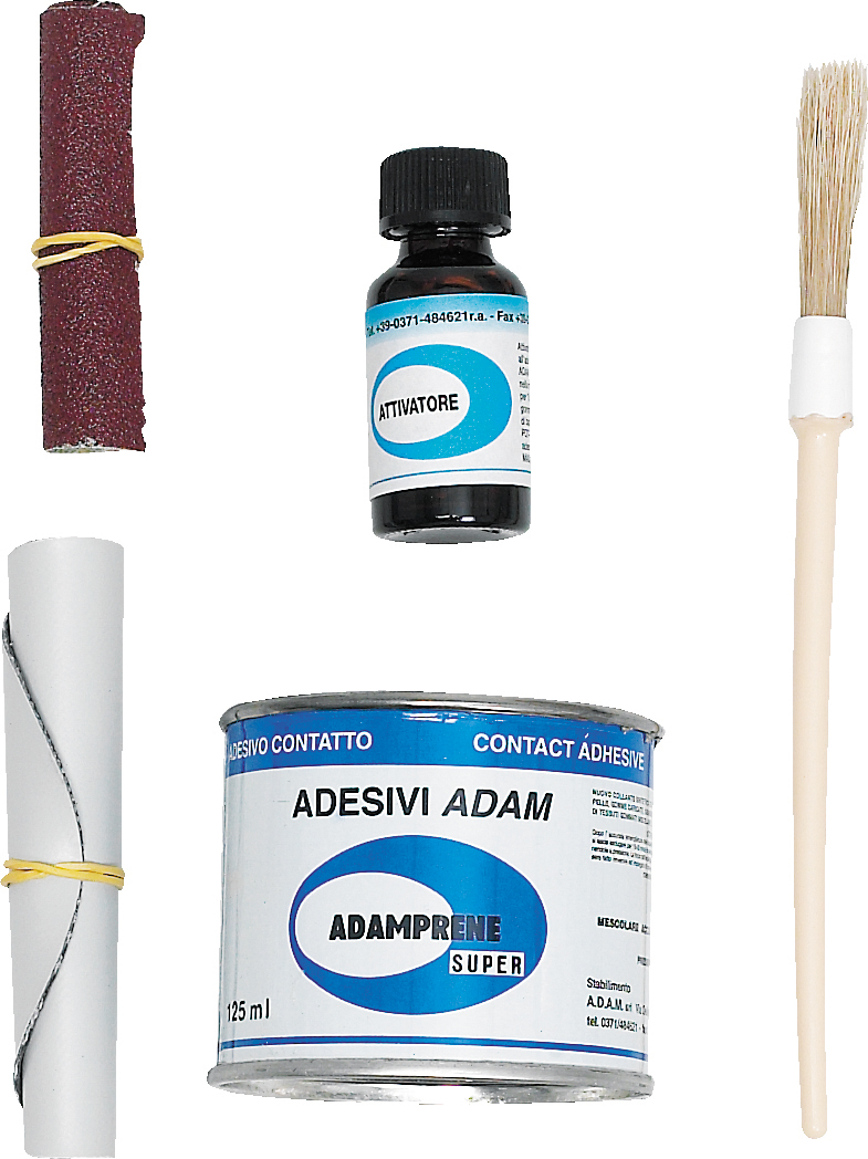 Komplett reperasjonssett for gummibåt i gummi. Inneholder lim, herder, kost og lapp.