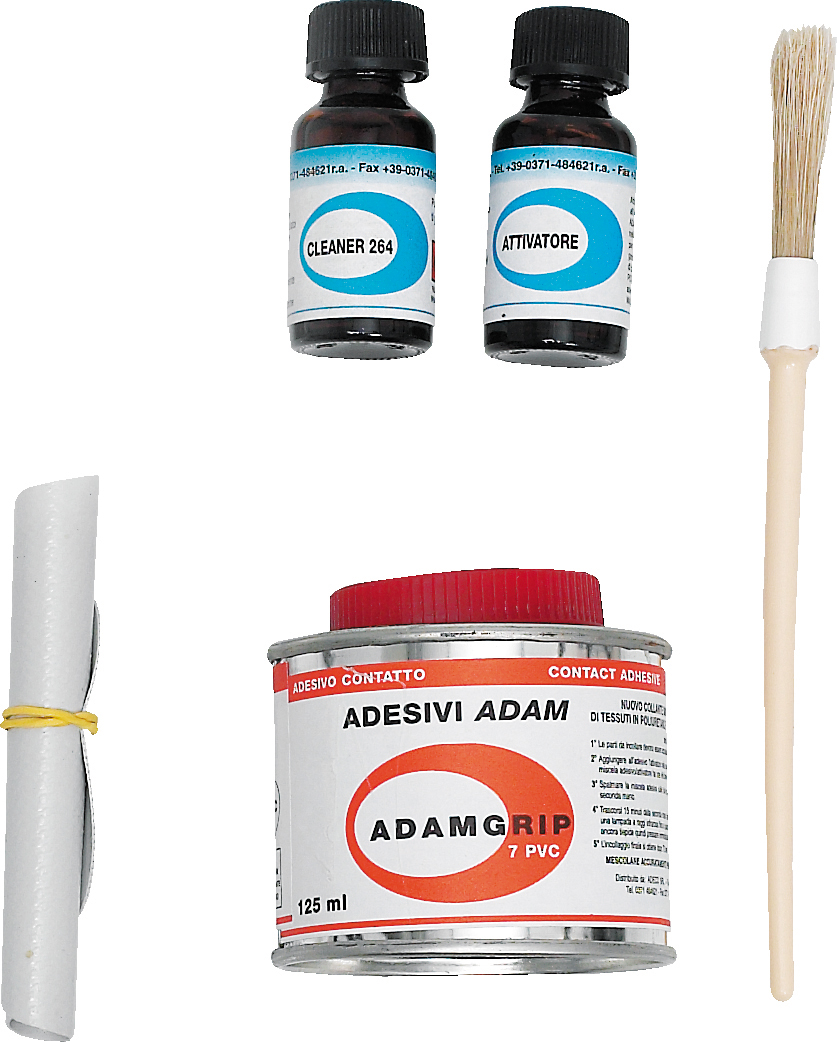 Komplett reperasjonssett for gummibåt i PVC. Inneholder cleaner, lim, herder, kost og lapp.