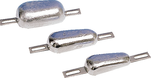 Oval sinkanode, som normalt festes til skroget.